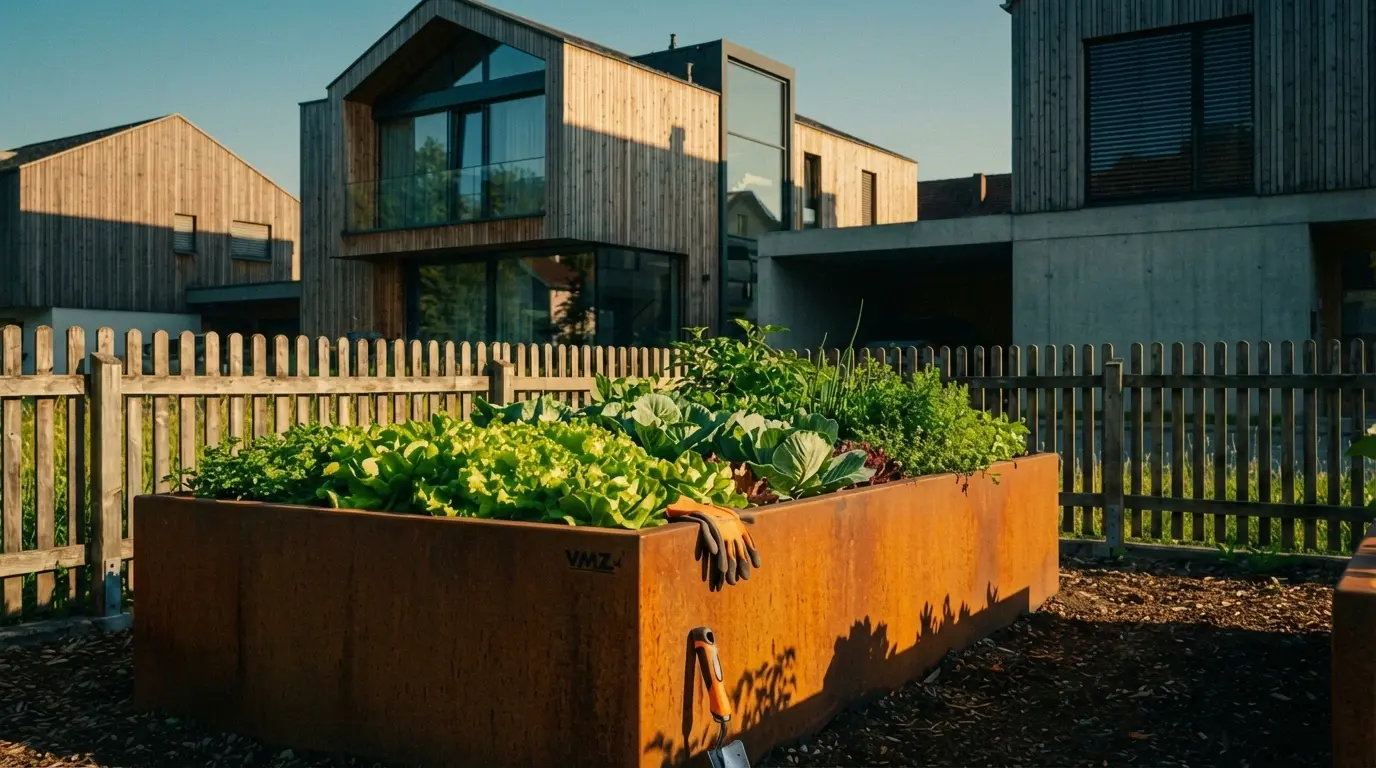 Langlebiges Hochbeet aus robustem Stahl, das im Laufe der Zeit eine einzigartige, rotbraune Rost-Patina entwickelt. Die moderne Alternative zu Holz – verrottungsfrei, stabil und ein optisches Highlight in jedem Garten.